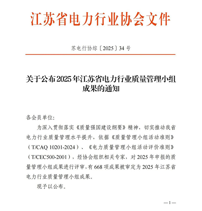 近年來,國豐公司在質(zhì)量管理領(lǐng)域收獲頗豐,榮獲江蘇電力行業(yè)質(zhì)量管理優(yōu)秀成果:
